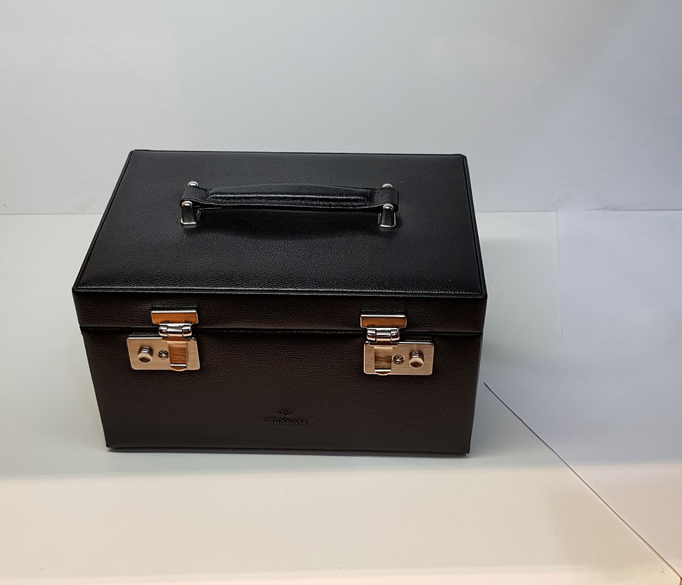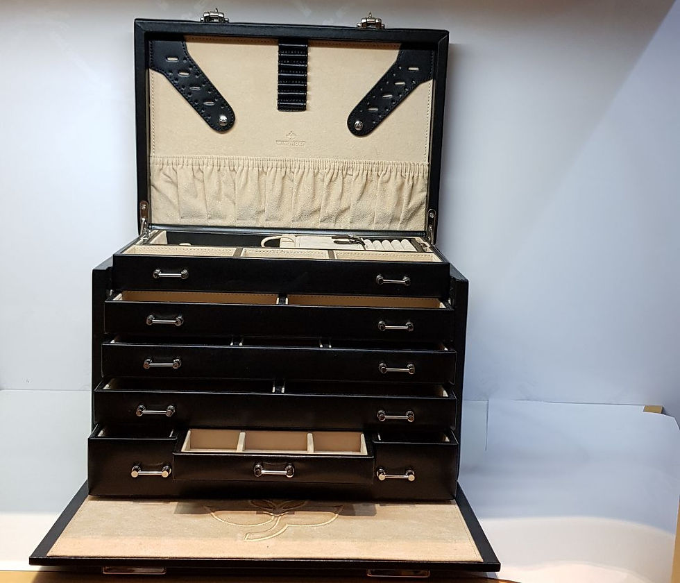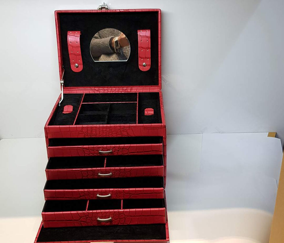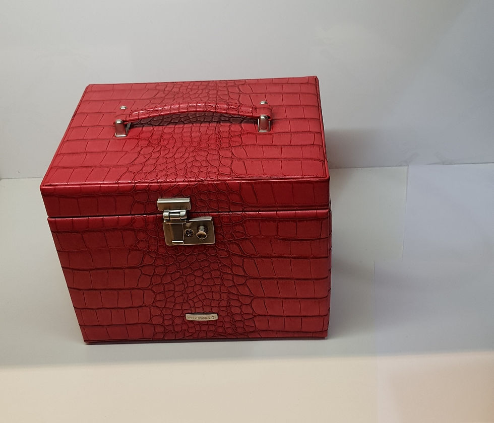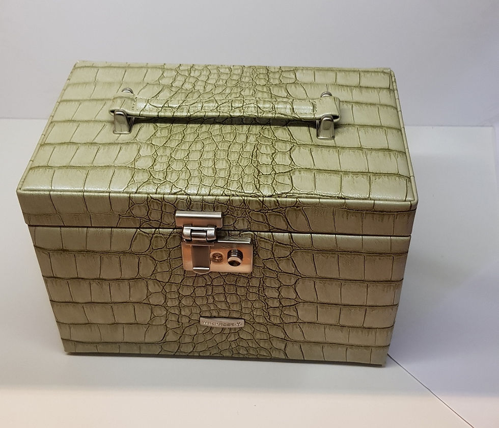 Grand coffret bijoux Windrose, croco beige (reflet vert amande)